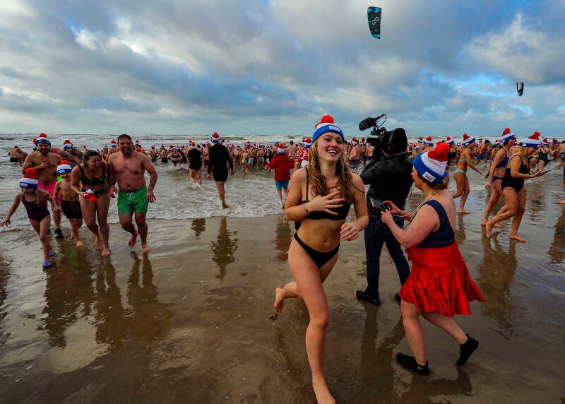 De Gezelligste Nieuwjaarsduik van Nederland vindt ieder jaar plaats op het strand van Egmond aan Zee.